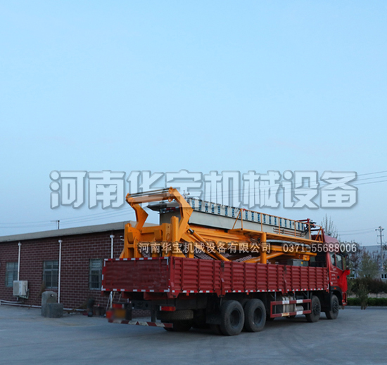 平衡油缸伸出,連桿平衡機構上方的壓瓦機的一起抬起,可以實現與水平面保持有一定的夾角,以適應廠房頂坡度,伸縮油缸伸出,伸縮臂架伸長,能夠快速調整壓瓦機的高度,到達需要的高度后,啟動壓瓦機,實現屋面壓瓦和運輸的效果,施工完畢后,卸下彩鋼卷,將各個部位收回到工作之前的狀態中去,這樣就能方便運輸和轉移施工地點啦。